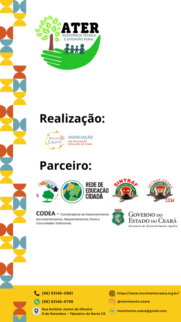 Esta iniciativa é fruto de uma parceria estratégica com a Secretaria do Desenvolvimento Agrário (SDA) do Estado do Ceará e a Coordenadoria de Desenvolvimento dos Assentamentos, Reassentamento, Povos e Comunidades Tradicionais (CODEA).