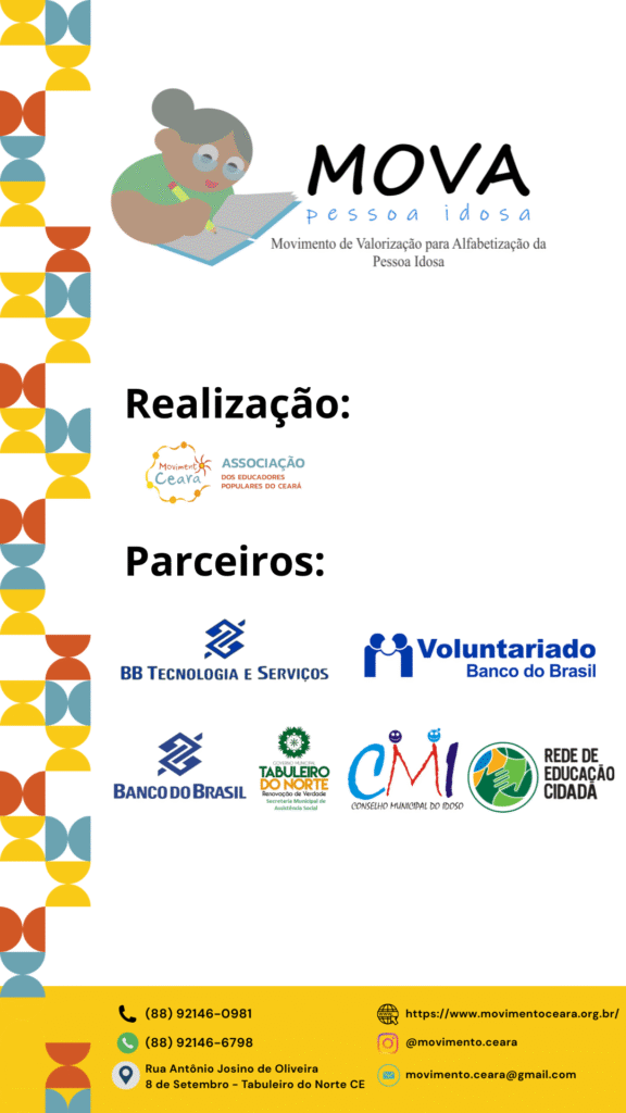 Com foco na valorização e enaltecimento do potencial da pessoa idosa e no fortalecimento da participação cidadã, o projeto atuou no município de Tabuleiro do Norte, Ceará.
